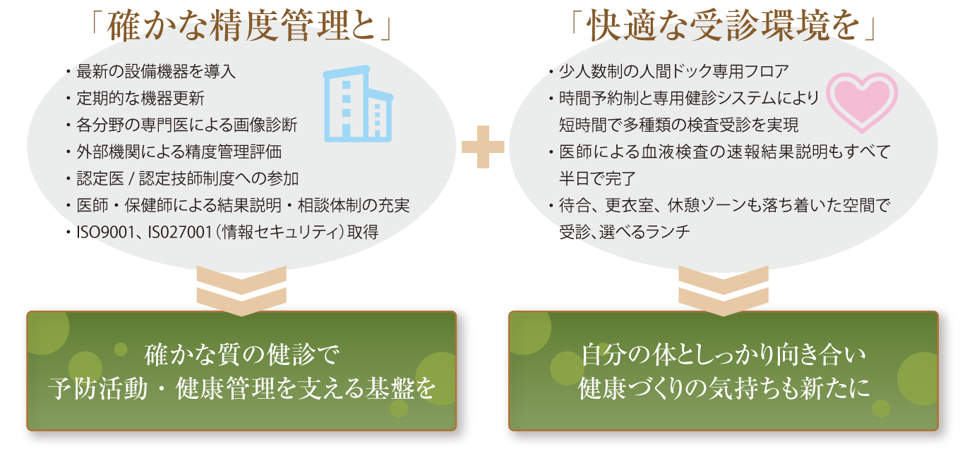 特に、長年のノウハウを活かした人間ドックは、確かな精度管理と快適な受診環境を大切に、年々バージョンアップを重ねております。